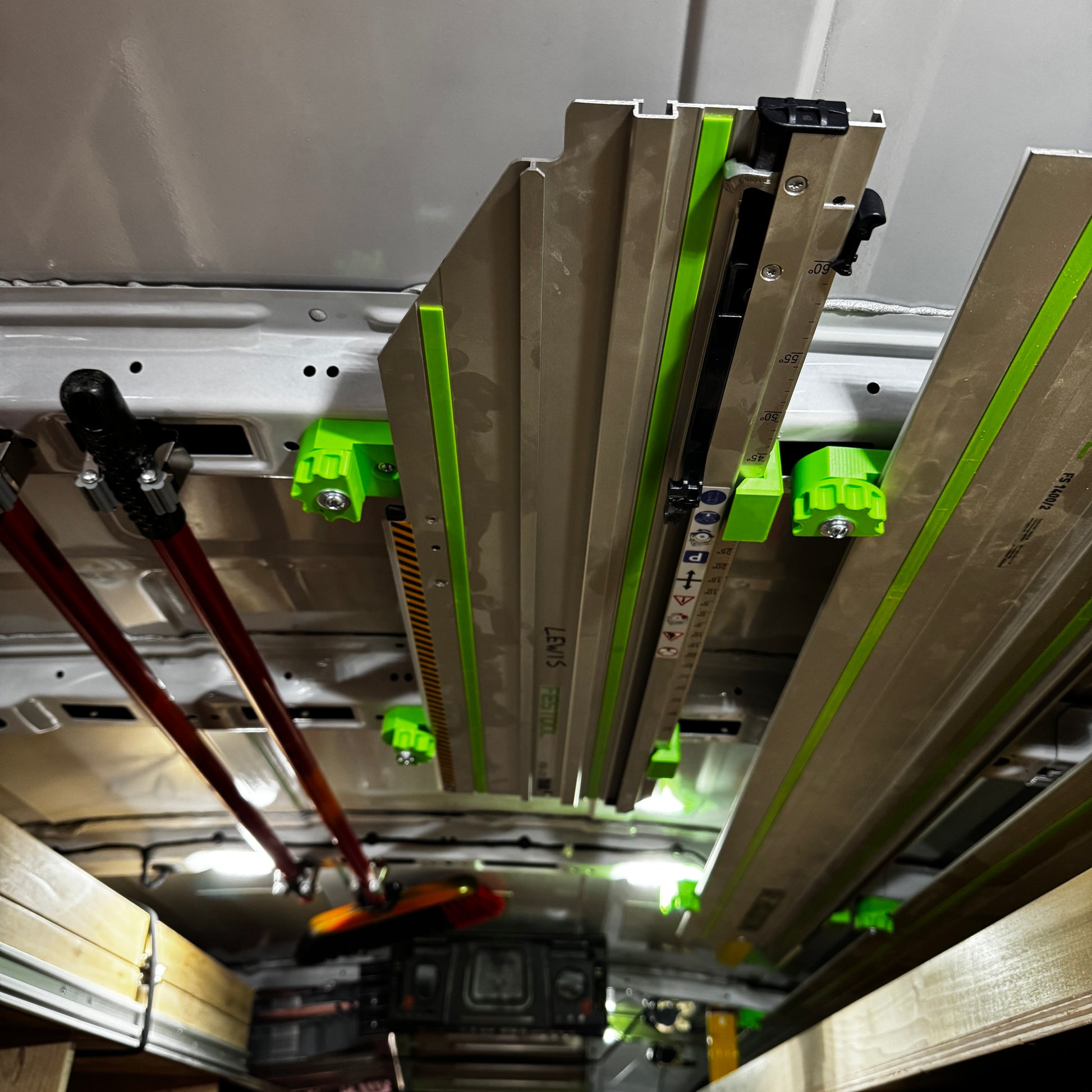SOLD INDIVIDUALLY! 1 UNIT! This holder is for the HKC Track ONLY! (it is wider than the standard FS tracks) This is a track saw holder specifically designed for use on the roof of a van or trailer. These hold the track in place securely and are very easy to use and install. These are specifically designed to be extra stiff and strong which helps when fastening to the roof a van which is not flat.